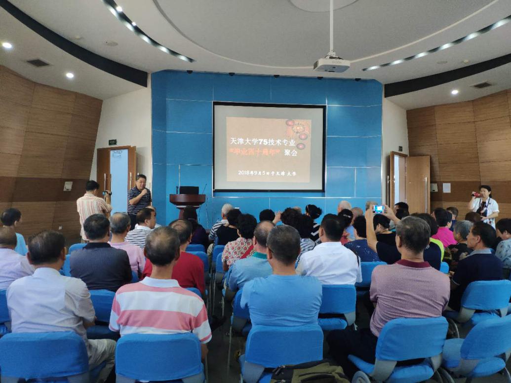 本站讯(通讯员:王楠)2018年9月5日上午,天津大学75级无线电技术专业“毕业40周年”聚会在天津大学第26教学楼报告厅举行,53位校友及当年的授课老师们重聚母校,微电子学院党委书记杨晋生和天津大学校友总会副秘书长谷钰也参加了此次聚会。