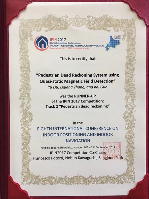 在近日举办的依附于国际室内定位领域顶级盛会IPIN2017的定位大赛EvAAL中,我校微电子学院刘昱副教授团队在“行人推位导航定位”比赛项目Track2中以2.13米的定位误差获得亚军。据悉,EvAAL室内定位大赛是全球最具盛名的室内定位比赛之一,代表着该项技术的尖端水平,旨在鼓励研发精确、实用的室内定位技术,推动整个室内定位行业的发展。