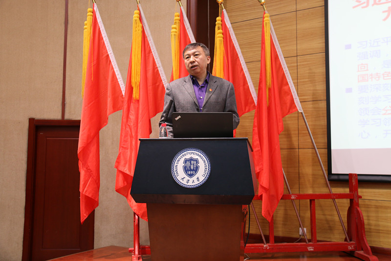 舒歌群从深刻领会十九大报告的意义、深入学习十九大精神、习近平关于教育的系列讲话和扎根中国大地办大学等四个方面进行了介绍,并结合自身教学科研工作实际,深入浅出地对高校的发展目标、创新定位和工程类人才培养方向做了深入阐述。党课中,舒歌群就十九大的主题、报告中确立的重大理论观点、重大战略思想,作出的重大决策和部署做了说明,结合十九大报告中与高校发展相关的内容,强调高校在创新方面对加强国家创新体系建设、强化战略科技力量的作用,指出要在坚持和加强党的全面领导的前提下,加快一流大学和一流学科建设,实现高等教育内涵式发展。