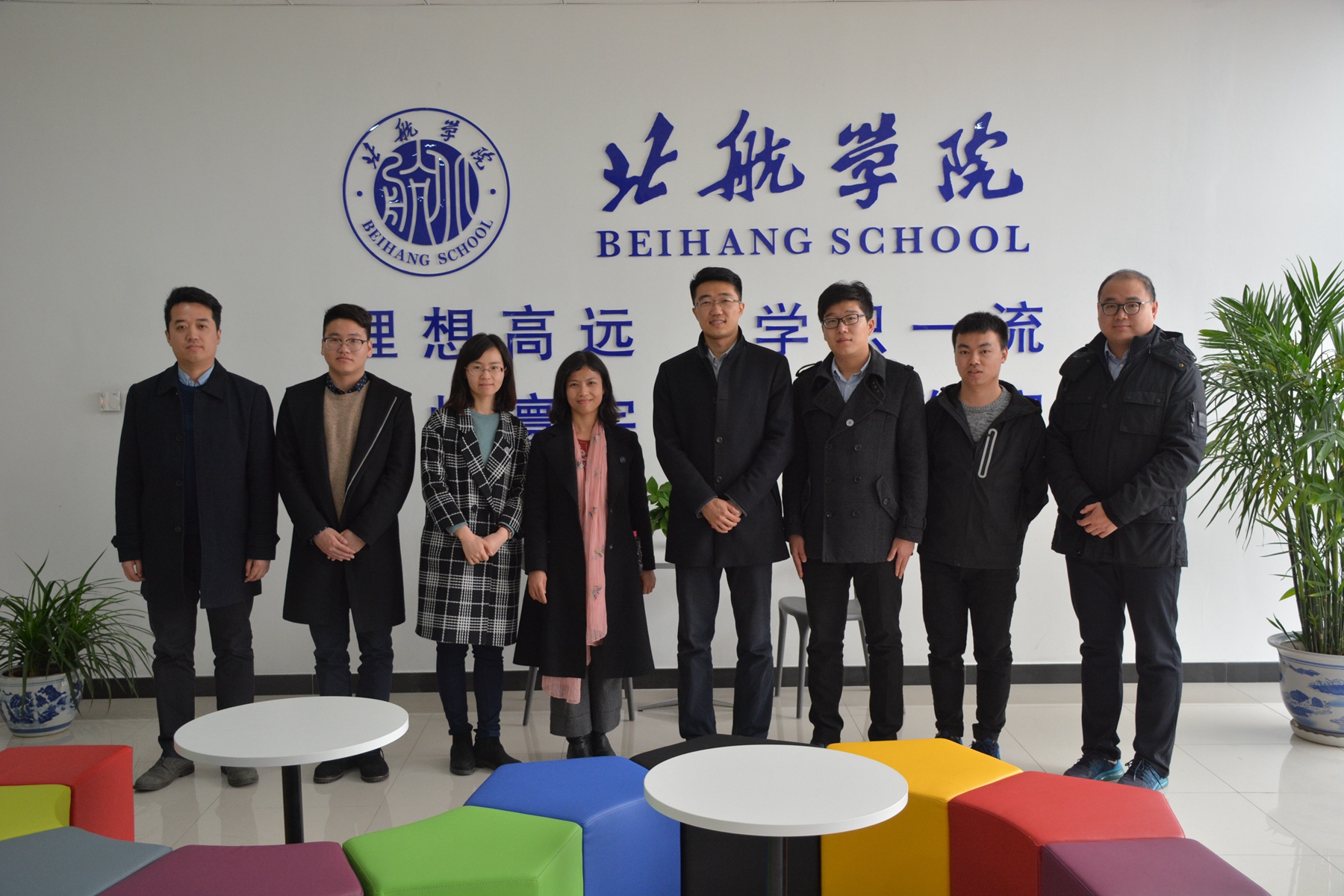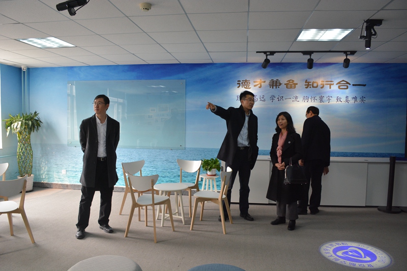 下午一行人来到北京航空航天大学沙河校区,北京航空航天大学学生工作部(武装部)部长、学生处处长、北航学院党委常务副书记董卓宁、学工部副部长冯盛、学生大数据中心主任、北航学院士谔书院执行院长刘科生、北航学院士谔书院专职辅导员陈伟东热情接待。在刘院长带领下一行人首先参观了沙河校区“雄鹰领飞”办公室以及书院的“73°空间”学生活动平台,随后与董卓宁部长、刘科生院长以及电子信息工程学院党委副书记郑磊、计算机学院党委副书记纪一鹏以及有关学院的专兼职辅导员进行交流座谈。座谈会上,董卓宁部长和李静松部长代表两校致辞,分别表达了欢迎与感谢。刘科生院长从北航书院制、士谔信息类、未来新实效三个方面详细介绍了书院的建设情况和工作思考,郑磊书记、纪一鹏书记分别从专业学院的角度就日常思政、专业认知、创新实践等人才培养工作做了介绍。双方围绕大类招生与专业选择、大类专业与通识教育、书院学院的协同联动以及科技创新创业等问题进行了深入讨论与交流。