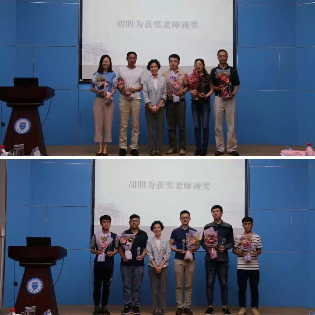 颁奖仪式上主持人介绍了活动开展情况,学生推荐代表深情讲述了10位老师的感人事迹,胡明老师为获奖老师代表颁奖,未能到场的老师由其课题组学生代表代为领奖。胡明老师在天大求学、执教40多年,曾荣获天津大学第四届“我心目中的好导师”、天津市优秀教师、天津大学教学名师、天津大学教书育人先进标兵等荣誉,是学生眼中可亲可敬的“胡妈妈”。