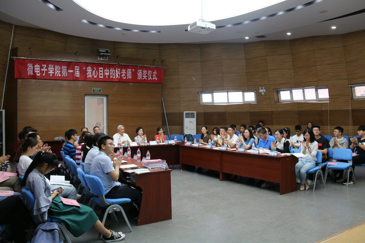 本站讯(通讯员:刘佳)2018年6月9日上午,微电子学院在26楼D区报告厅举行“学为人师、行为世范”第一届“我心目中的好老师”颁奖仪式,学院关工委成员张之圣、胡明,党委副书记陆丽、副院长刘强、徐江涛,“好老师”获奖代表肖夏、张为、谢生、程思璐,以及学院青年教师代表、第五期英华班学员参加,仪式由学生推荐代表、学生会权益部部长秦瑞同学主持。