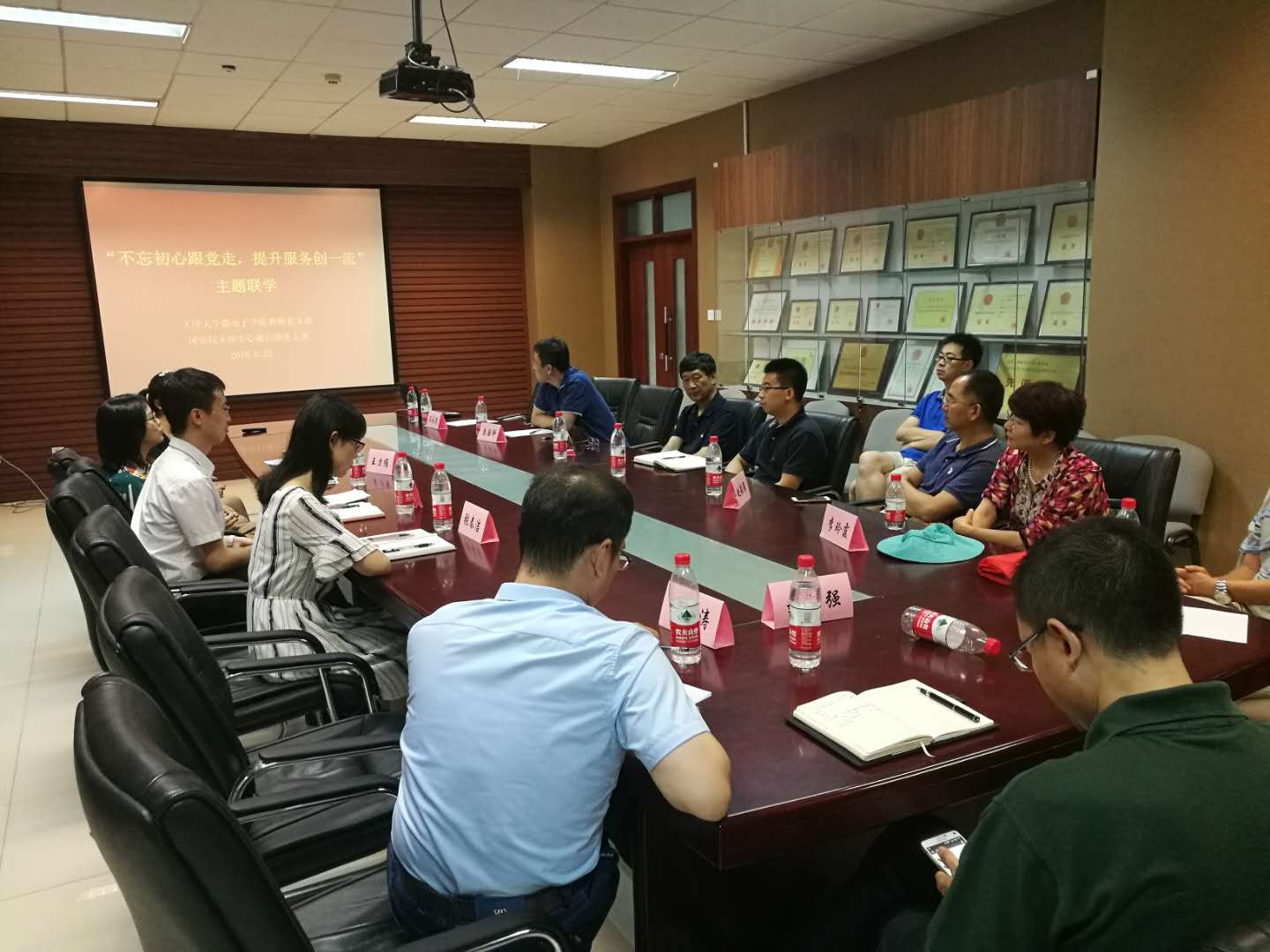本站讯(通讯员:秦国轩)2018年6月22日,天津大学微电子学院教师党支部和国家知识产权局专利局专利审查协作天津中心(以下简称“国知局天津中心”)通信部党总支在微电子学院第二会议室开展了以“不忘初心跟党走,提升服务创一流”为主题的支部组织交流活动,天津大学微电子学院党委书记杨晋生、教师党支部书记秦国轩、学院副院长徐江涛、副院长刘强及支部部分党员同志,国知局天津中心通信部党总支的王力维书记,刘俊源主任及支部部分党员同志参加了此次活动,活动由马永涛老师主持。