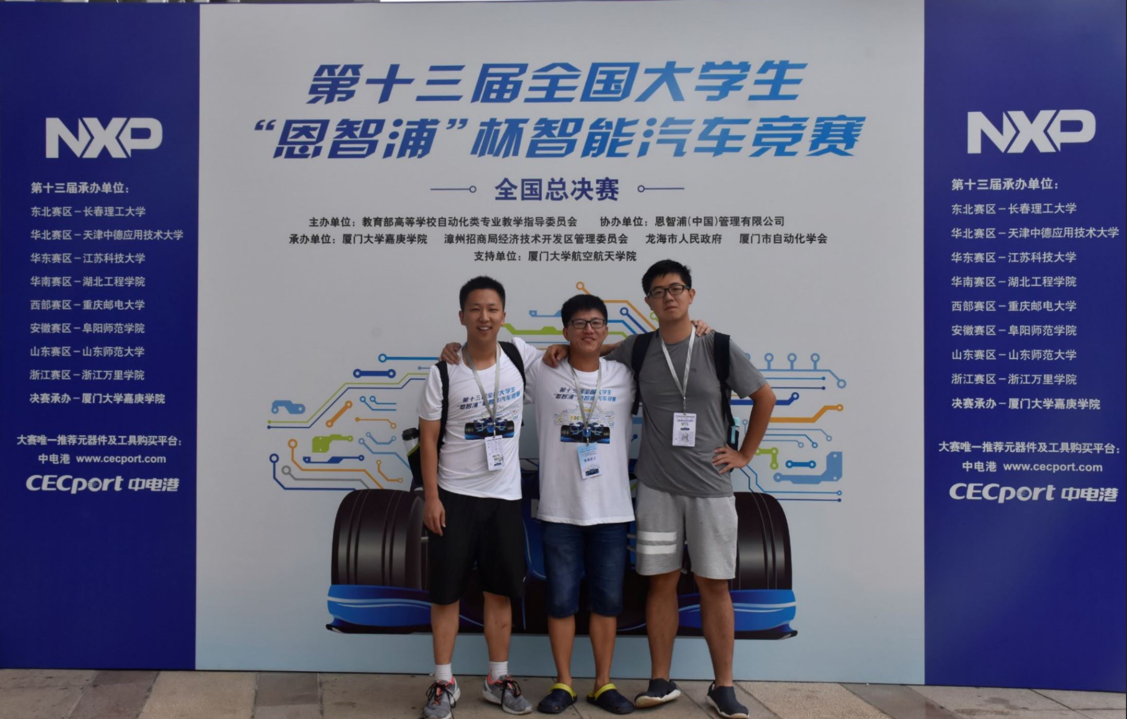 本站讯(通讯员:王玥)8月22日至8月25日,第十三届全国大学生“恩智浦杯”智汽车竞赛在厦门大学嘉庚学院举办。由我院冯礼群、李星辰以及材料学院的张嘉祥组成的“天津大学电磁平衡队”获得了全国二等奖和室外马路挑战赛全国二等奖的优秀成绩。作为天津大学两支进入全国总决赛并获奖的队伍之一,冯礼群、李星辰在比赛中充分发挥了团队精神和拼搏精神,展现了天津大学微电子学院学生的风采。