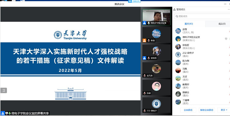 本站讯(通讯员:云阔、赵雪)5月26日下午,为推进落实天津大学第三次人才工作会议精神,结合“迎盛会、铸忠诚、强担当、创业绩”主题学习宣传教育实践活动安排,学院党委邀请天津大学教师工作部部长、人事处处长栗大超做专题报告。学院全体教职工线上线下参加本场报告。
