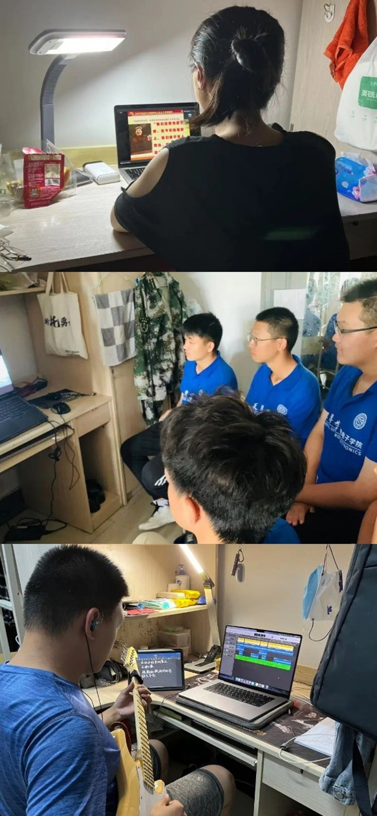 在这场突如其来的抗“疫”斗争中,广大师生不忘初心、冲锋在前、守望相助,主动作为,通过多种形式的工作组织、志愿服务,以热心送信任,展现微电风采。各年级、班级学生骨干积极承担,迅速建立疫情防控工作网格,高质量推进各项组织工作。“老师有什么需要的您尽管告诉我,能帮一些忙最好!”“我手机没静音,晚上有急事您随时喊我!”“想得起、找的到、靠得住”是学生骨干最真实的写照。为快速应对校内疫情防控需要,“闻令而动、时刻待命”的微电疫情防控先锋队,已由最初的200余人扩张到500余人,静默学生送餐、核酸检测信息录入、数据统计……“老师,我是党员,随时准备着!”“老师还缺人吗,我没有静默,我可以出力!” 微电学子以青春之我锤炼意志,勇于担当、甘于奉献、顾全大局,真正用硬肩膀扛起重担子。 学习、科研、读书、吉他、观影……校园生活被按下“暂停键”,但微电学子的美好没有停滞,延展“五育”,不断成长。