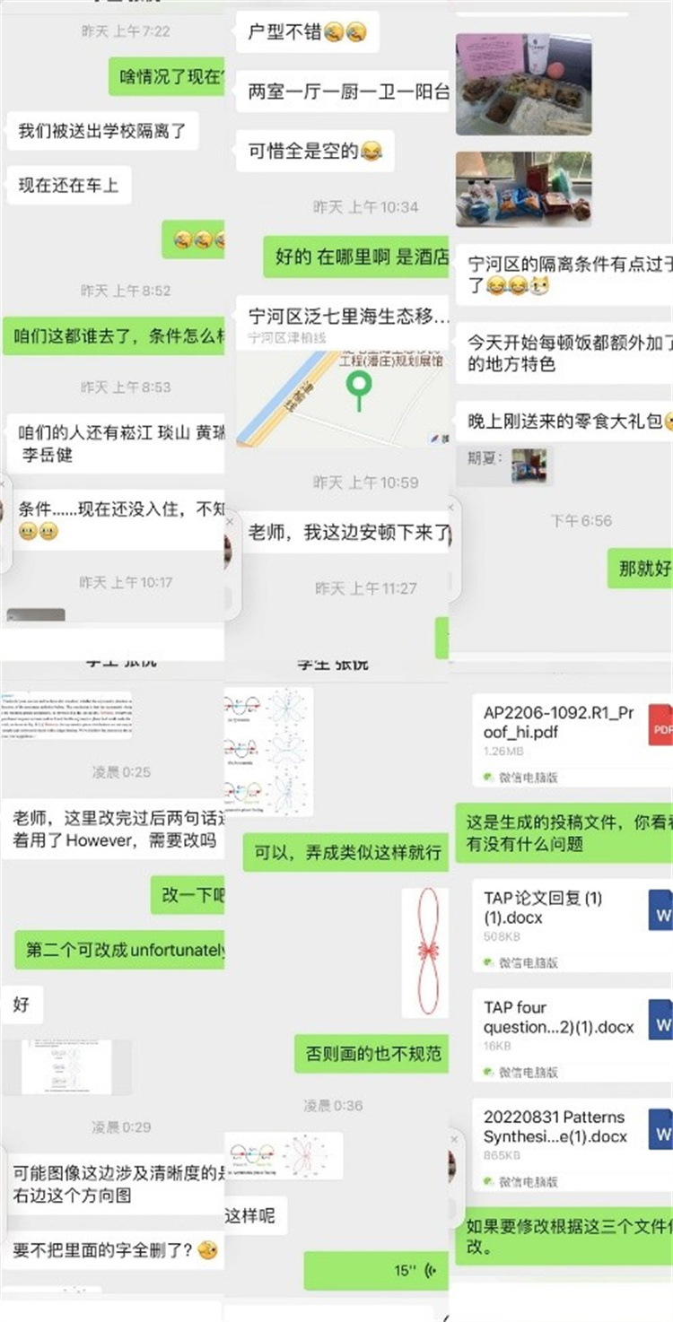 研究生导师线上指导学生开展科研任务,修改论文、课题讨论、实验安排……隔离不隔爱,静默不静学,最大限度为学生科研学习进度保驾护航。“我的学生张倪有一篇论文在投,天线领域国际顶级刊物IEEE Transactions on Antennas and Propagation,经过几个晚上的连夜修改讨论,修改稿终于于今天上午投出。学生现在在找工作和毕业的关键期,进度不能因为隔离而停滞,投出稿件的那一刻,由衷的为学生开心!”研究生导师罗宇说道。