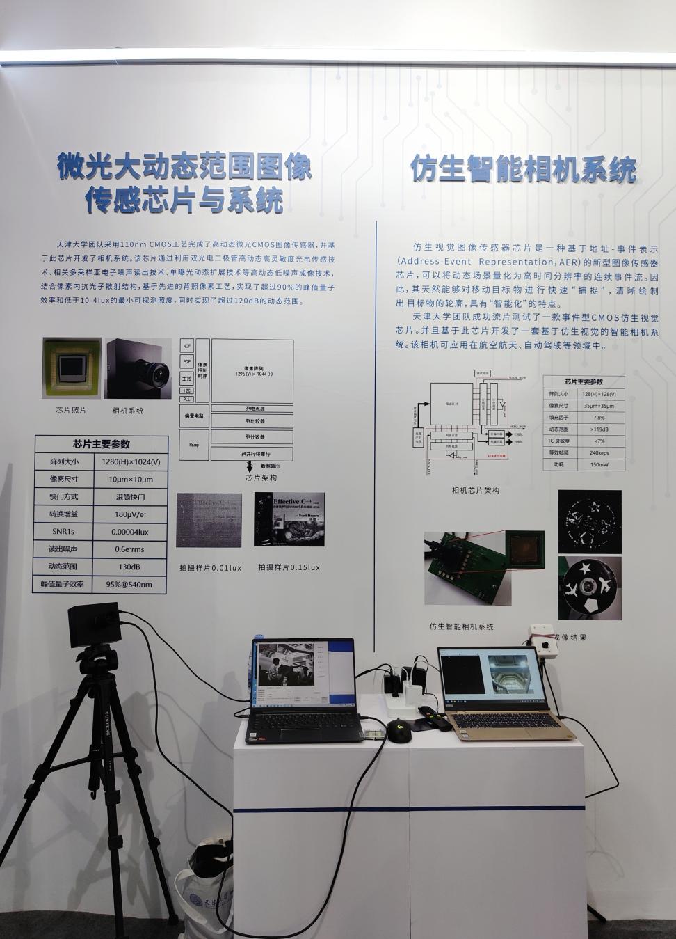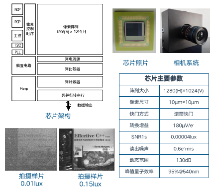 为应对我国高端CMOS图像传感器芯片长期严重依赖进口相关问题,天津大学团队采用110nm CMOS工艺完成了高动态微光CMOS图像传感器,并基于此芯片开发了相机系统。该芯片通过利用双光电二极管高动态高灵敏度光电传感技术、相关多采样亚电子噪声读出技术、单曝光动态扩展技术等高动态低噪声成像技术,结合像素内抗光子散射结构,基于先进的背照像素工艺,实现了超过90%的峰值量子效率和低于10-4lux的最小可探测照度,同时实现了超过120dB的动态范围。其众多优良的性能使其可投入到汽车电子、安防监控、生物医疗和航空航天等领域实际应用中。