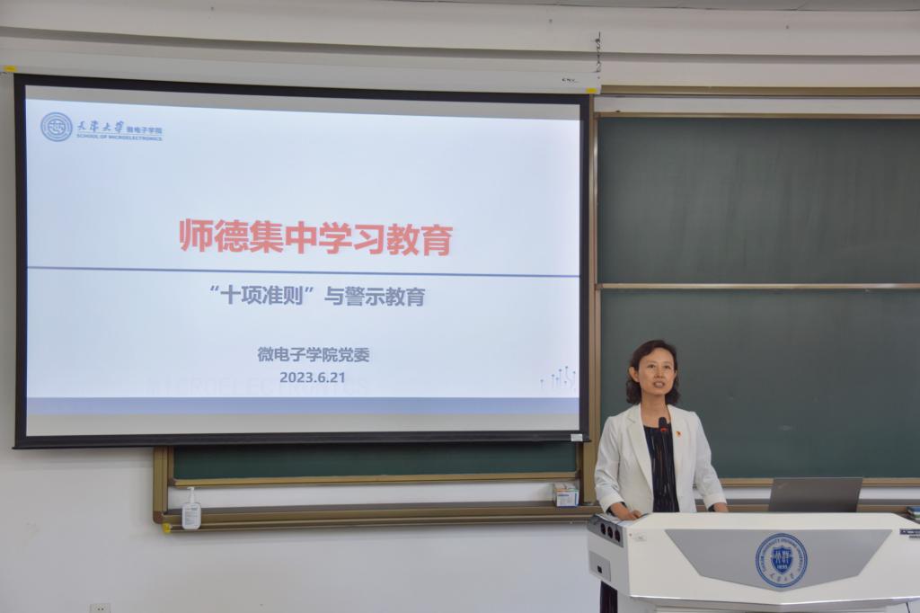 微电子学院坚持把师德师风建设摆在教师队伍建设的首要位置,把师德师风作为评价教师的第一标准,以“师德师风建设”为抓手,通过健全制度保障,选树模范典型,加强教育宣传,积极引导广大教师“以德育人”“以德治教”,自觉恪守教书育人职责、落实立德树人根本任务,为学校事业发展作出积极贡献。