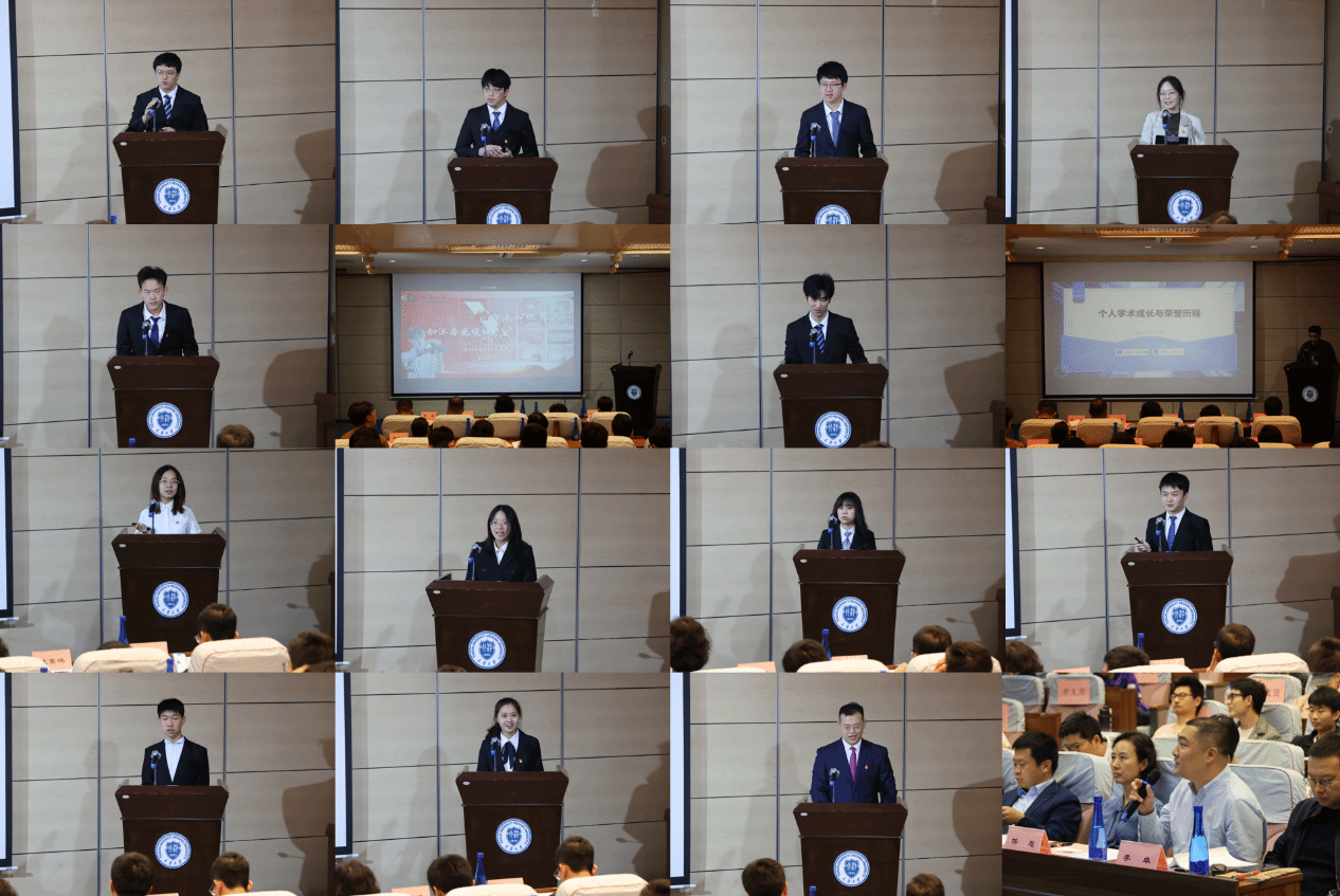多位往届“微电之星”获得者也以视频寄语本届选手,表达了对选手们的祝贺以及对于到场同学们的鼓励。往届“微电之星”获奖者、优秀博士生代表谷东启为同学们讲述了自己的科研故事,分享了从本科参评“微电之星”到攻读博士学位的成长感悟,他提到:对失败的顿悟是科研人的“必修课”,从学习思维到创新创业思维的转变是走向更广阔天地的“进阶课”,激励同学们奋勇向前的同时,也为天大130周年校庆与学院10周年院庆送上诚挚的祝福。
