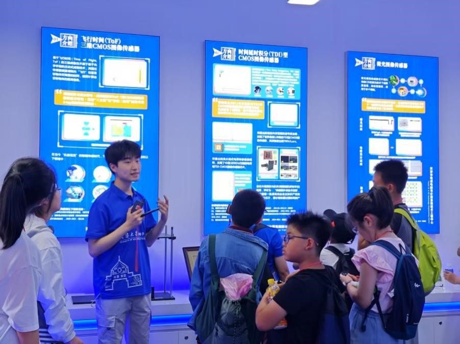 图传纵向党支部副书记扫琛量,支部成员李静敏、韩琳首先欢迎各位中小学师生的到来,随后做了关于集成电路的制造工艺与行业的发展现状介绍;围绕课题组公开项目,分享学院在图像传感器领域取得的最新进展;互动环节,扫琛量耐心解答来访师生关于集成电路领域的诸多问题,引导学生梳理严谨细致的学风,激发其想象力与探求欲,以实际行动展现高校研究生党员服务社会的担当。