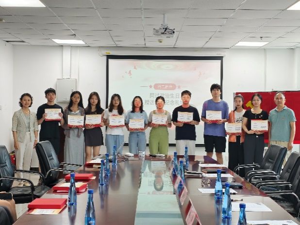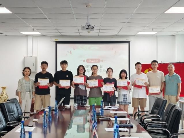 贾果欣和赵毅强为毕业生党员赠送政治生日贺卡与毕业赠礼,希望同志们在新的征途上永葆入党初心,牢记使命担当。