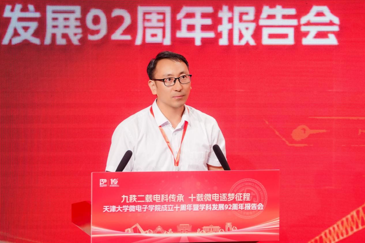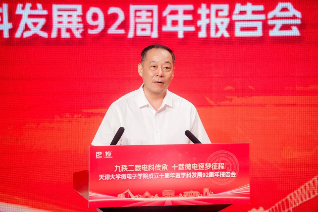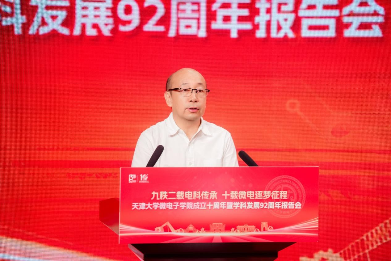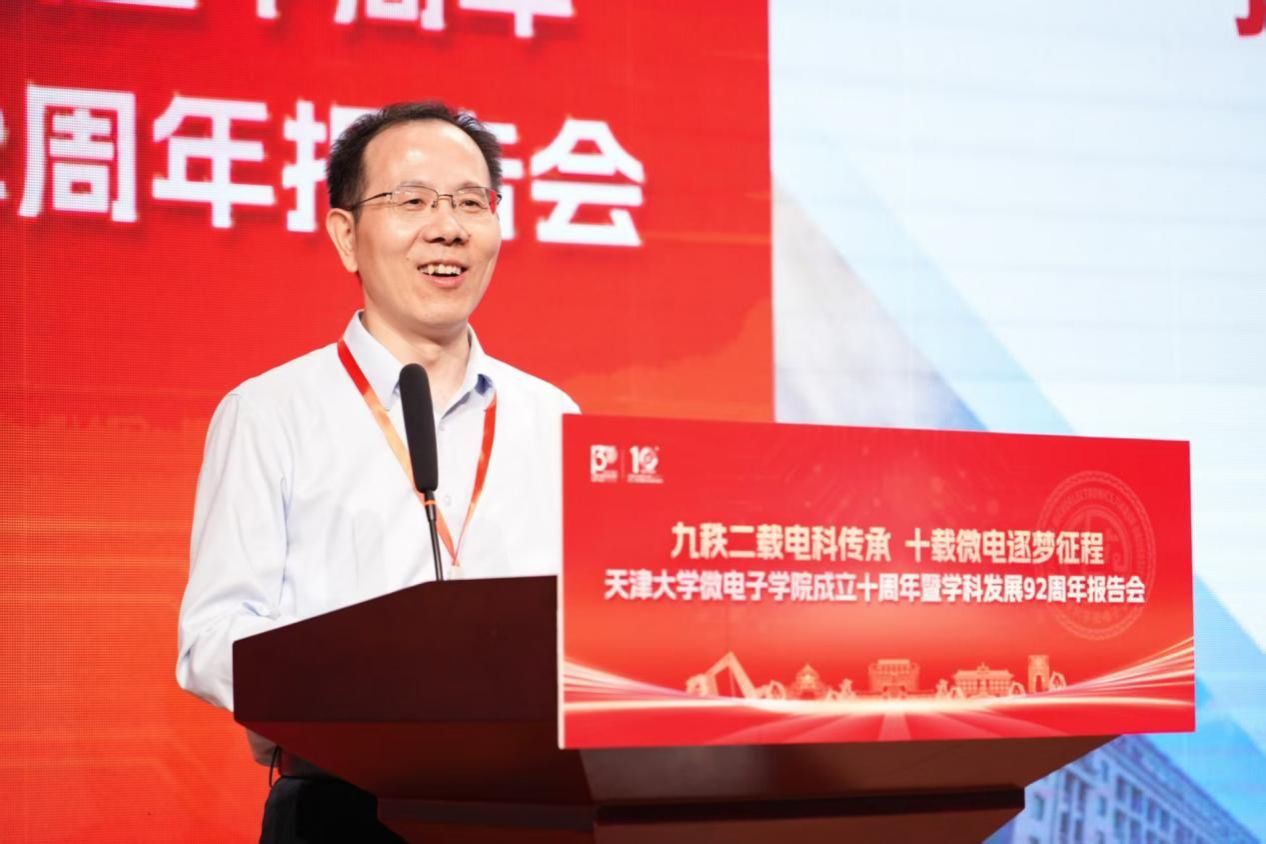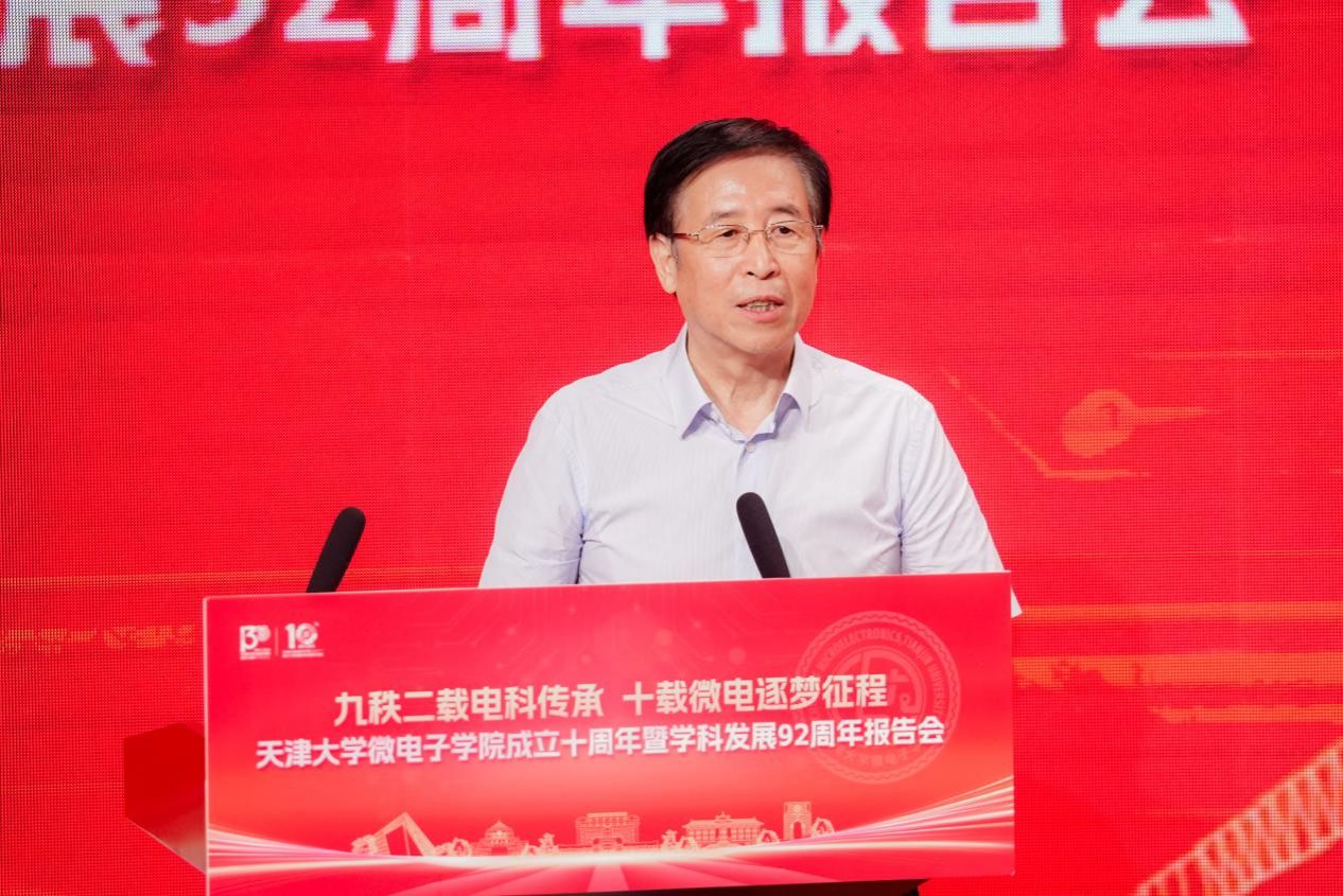 天津大学原党委书记李家俊致辞时表示,学院过去十年发展离不开全体师生的努力。他希望学院瞄准下一个十年及更长远目标奋进并提出四点希望:一是借鉴兄弟院校经验做好人才培养;二是以 “芯片微系统 +” 为方向提升学科与科研水平;三是加强师资队伍建设吸引并培育年轻人才;四是营造互相学习、共同进步的良好学院氛围。