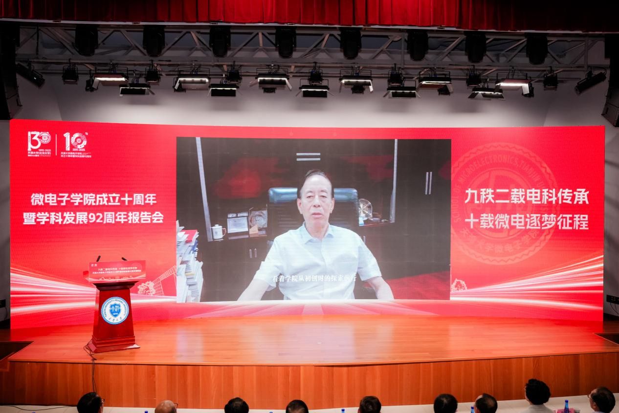 本站讯(通讯员:孙睿)九秩二载电科传承,十载微电逐梦征程。2025年7月29日下午,天津大学微电子学院成立十周年暨学科发展92周年事业报告会在卫津路校区大学生活动中心隆重举行。院士代表,专家学者代表、天津市教育两委、滨海高新区等单位负责同志,兄弟高校代表,合作企业代表,海内外校友代表出席大会。天津大学党委书记杨贤金、党委常委、常务副校长胡文平、副校长明东,学校部分机关部处、兄弟学院负责同志,学院退休老同志、师生代表及各界来宾共百余人参加大会。大会由天津大学微电子学院党委书记贾果欣主持。