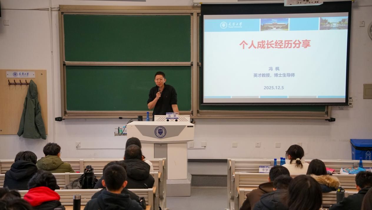 随后进行的开班第一课,学院院长助理、英才教授、博士生导师冯枫老师为学员们带来了题为 “个人成长经历分享” 的精彩讲座。冯老师结合自身求学经历,分享了他在专业学习、科研探索和综合发展等方面的宝贵经验。他鼓励同学们珍惜韶华,把握机遇,在点滴积累中实现能力跃升。