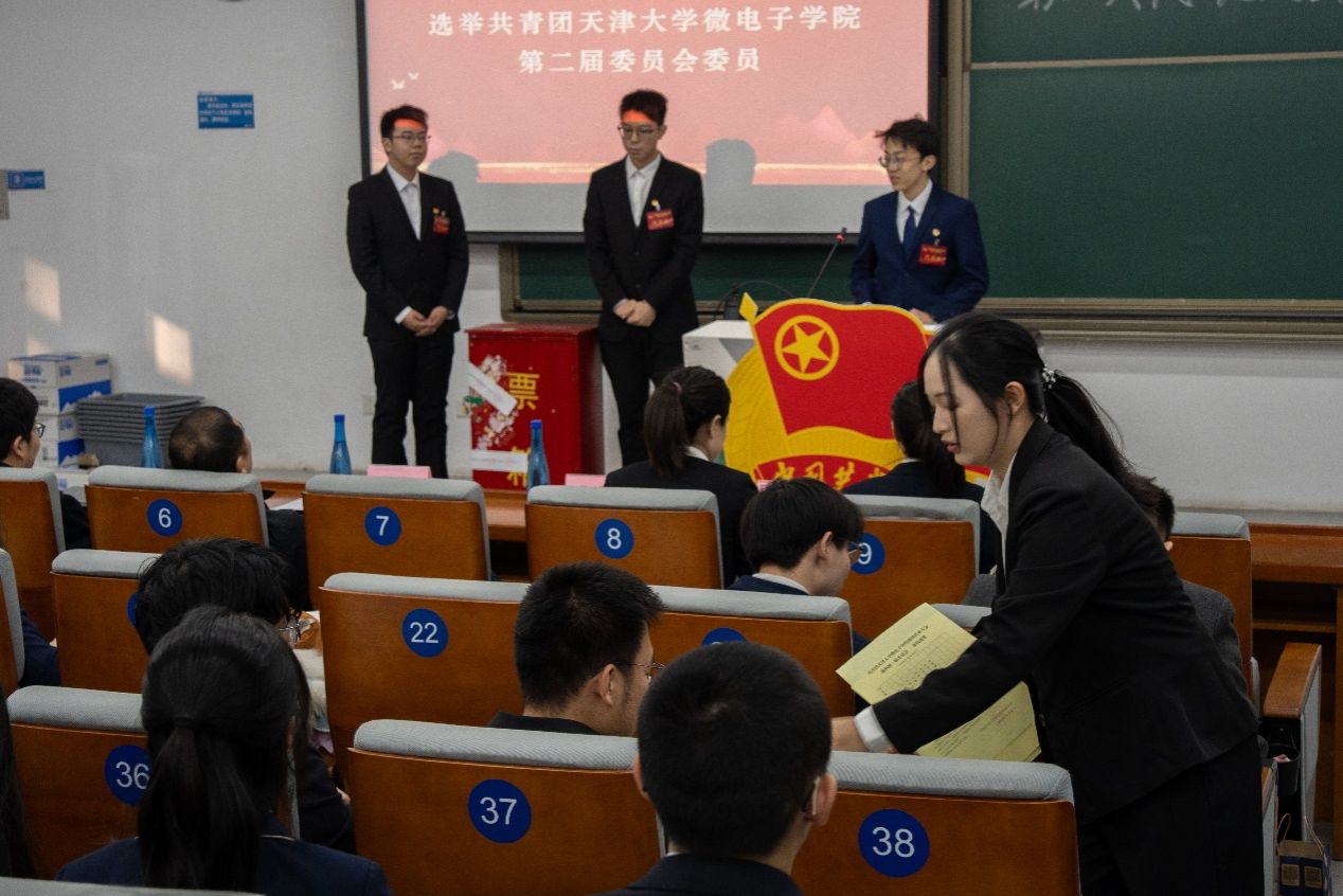 会后,共青团天津大学微电子学院第二届委员会召开第一次全体会议,经无记名投票,选举王玥同志为新一届委员会书记,选举尹明同志为新一届委员会副书记。
