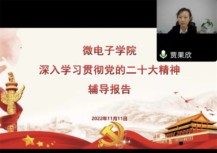 本站讯(通讯员:赵雪)深入学习宣传贯彻落实党的二十大精神,引导师生党员将思想统一到党的二十大精神上来,把力量凝聚到党的二十大确定的各项任务上来,坚定捍卫“两个确立”、坚决做到“两个维护”,11月11日下午,微电子学院党委邀请马克思主义学院柳兰芳老师为师生做题为《以中国式现代化全面推进中华民族伟大复兴》的精彩报告,微电子学院师生党员共计300余人分别在线上、线下参会,报告会由党委书记贾果欣主持。