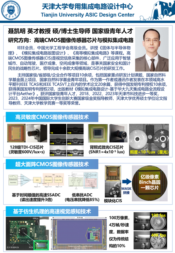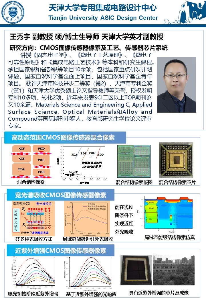 图像传感器芯片设计、传感器像素及工艺、感算一体化技术、成像与智能视觉系统等。