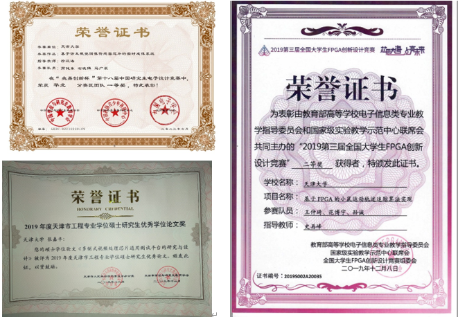 所指导学生中,2名博士获国家青年人才。指导博士生获中国国际大学生创新大赛国家级金奖2项;指导硕士生参加2019年全国大学生FPGA创新设计竞赛,荣获二等奖;第十八届中国研究生电子设计竞赛获全国二等奖、华北分赛区一等奖;第七届全国大学生集成电路设计应用创新大赛二等奖;获天津市工程专业学位硕士研究生优秀论文、中国电子学会优秀硕士学位论文;指导本科生在第六届全国大学生集成电路创新创业大赛获华北分区二、三等奖;学生在TCSVT、TVLSI、TCAS-I、Science China、 IEEE Sensor Journal等顶级会议和期刊上发表文章,获得国家发明专利授权多项,积极推进科研成果应用到产业实践。