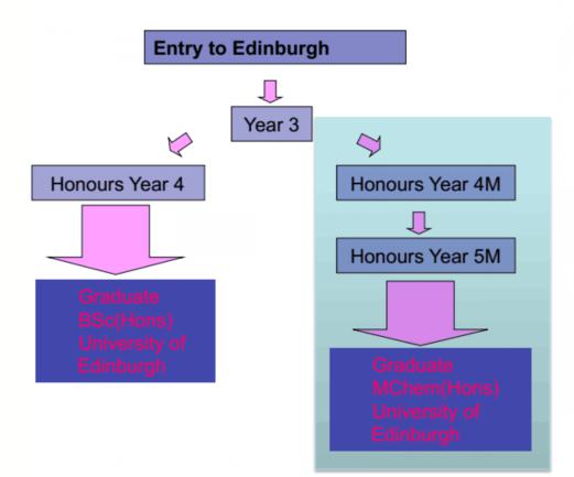 项目简介:爱丁堡大学与我校在化学、工程领域达成2+2合作项目,参加该项目的学生需先在我校完成2年的专业学习,再转入爱丁堡大学完成后续两年的学习(天津大学承认在外期间所获学分),达到双方的毕业要求后可分别获得我校的学士学位和爱丁堡大学荣誉学士学位。我校学生也可在爱丁堡大学学习第1年末选择转入2+3项目,即在爱丁堡大学学习3年后达到毕业要求可分别获得天津大学学士学位和爱丁堡大学硕士学位。两类项目转换图解如下: