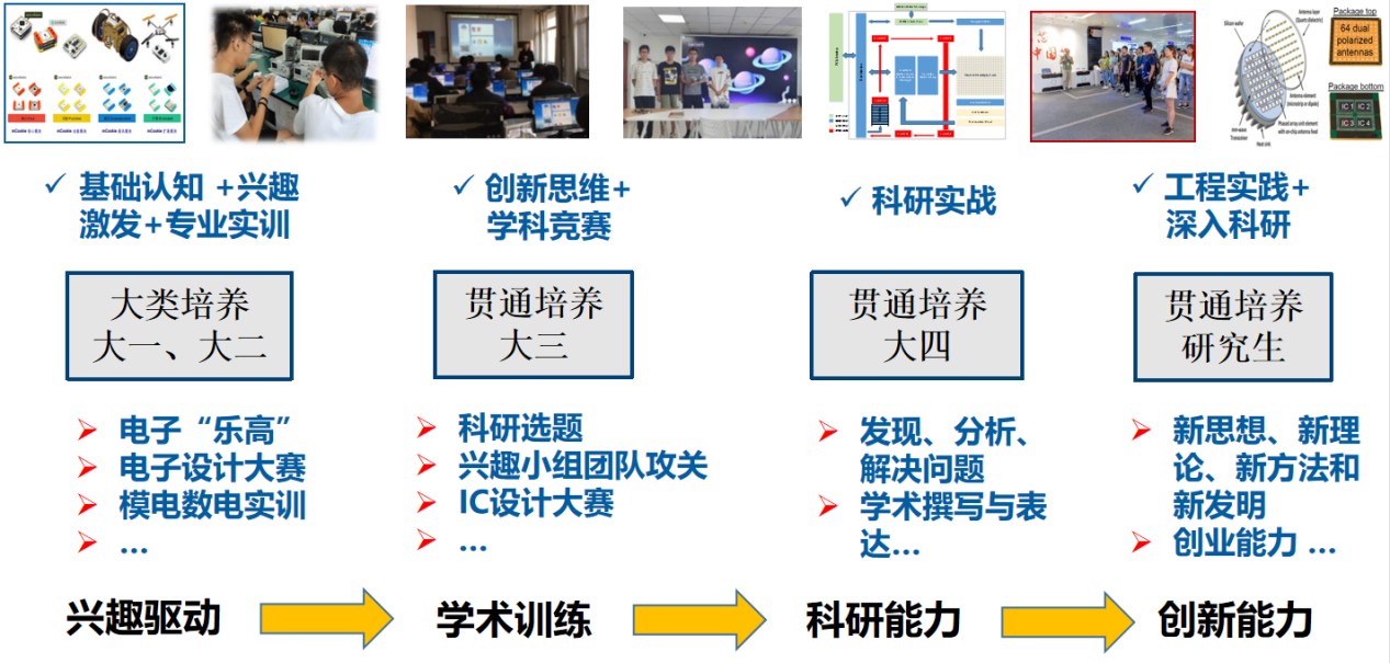 在课程体系方面,构建内容跨越本科生至博士研究生的模块化、进阶课程,统筹安排本科与研究生各阶段的学习,实施本硕博阶段学分互认。在科学研究方面,依托集成电路重大重点项目,课题研究计划涵盖本研衔接、硕士和博士研究三个阶段,一个项目深入研究做到底,解决后摩尔时代集成电路科学与工程面临的各种挑战和集成电路产业发展面临的“卡脖子”问题。
