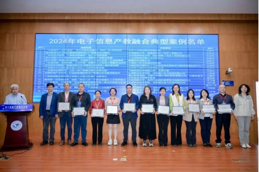 本站讯(通讯员:石惠)为了深入推动产教融合协同育人机制,一体推进教育发展、科技创新、人才培养,我院积极探索人才培养育人模式,通过与企业开展深度合作,有效促进了教育资源与产业资源的有效融合。4月18日,由中国电子工业标准化技术协会电子信息产教融合工作委员会主办的 “电子信息产教融合大会暨 2025 年电子信息产教融合工委会全体成员大会” 在杭州电子科技大学隆重召开。我院参与的“ ‘标课训证赛研用’ 七位一体产教融合模式探索实践”实践案例,喜获 “2024年度电子信息产教融合典型案例”。
