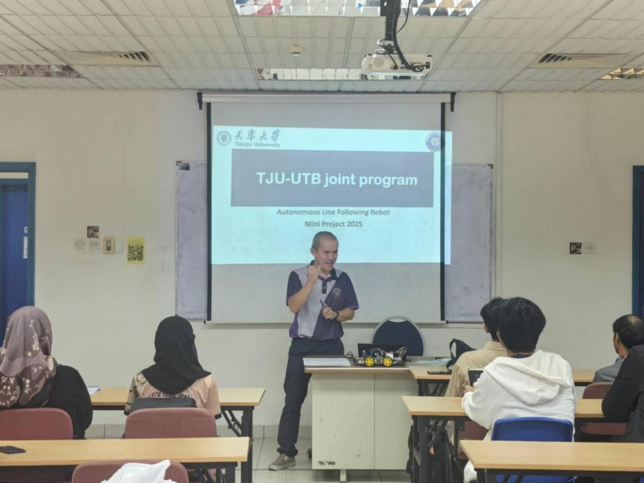 本站讯(通讯员:李磊、孙睿)为落实新工科建设要求,深入实施天津大学“一流本科教育跃升行动”方案,聚焦拔尖创新人才培养核心目标,着力塑造学生“家国情怀、全球视野、创新精神和实践能力”的卓越品质,天津大学微电子学院于2025年7月25日至8月7日开展暑期海外创新实践项目计划(文莱站)。学院党委副书记韩旭、副教授李磊率12名本科生代表团,赴文莱理工大学(Universiti Teknologi Brunei, UTB)开展为期两周的学习交流。项目紧扣新工科交叉融合与国际化培养内涵,围绕创新实践、科技前沿体验与文化互鉴三大维度,精心设计了无人车循迹多学科项目实践、UTB实验室深度参访及文莱文化浸润体验等特色活动,旨在为学生搭建锤炼工程创新能力、拓展国际竞争视野的拔尖人才成长平台。