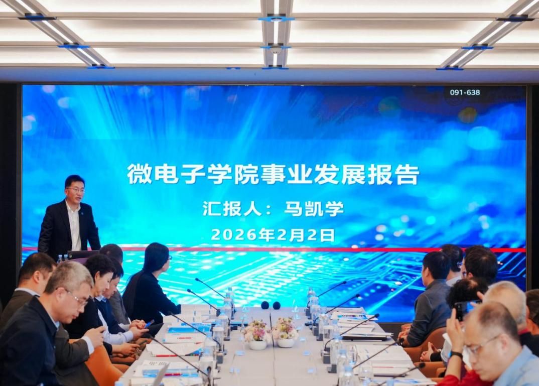 本站讯(通讯员:赵雪)岁序更迭,华章日新。2026年2月2日,微电子学院召开学院事业发展论坛,系统总结2025年及“十四五”工作成效,全面部署“十五五”重点任务,为学院未来五年的高质量发展擘画蓝图。天津大学发展规划处副处长张立迁、教务处副处长宋春风应邀出席大会,微电子学院班子成员、退休教师代表以及全体教工参加会议。会议由党委副书记韩旭主持。