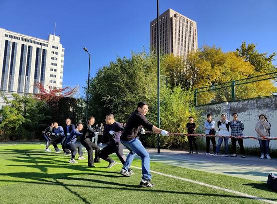 拔河赛场上,选手们铆足力气,一次次极限拉扯,一次次顽强坚持,麻绳中间的红丝带不断左右移动,选手们个个涨红了脸,场面热闹非凡。