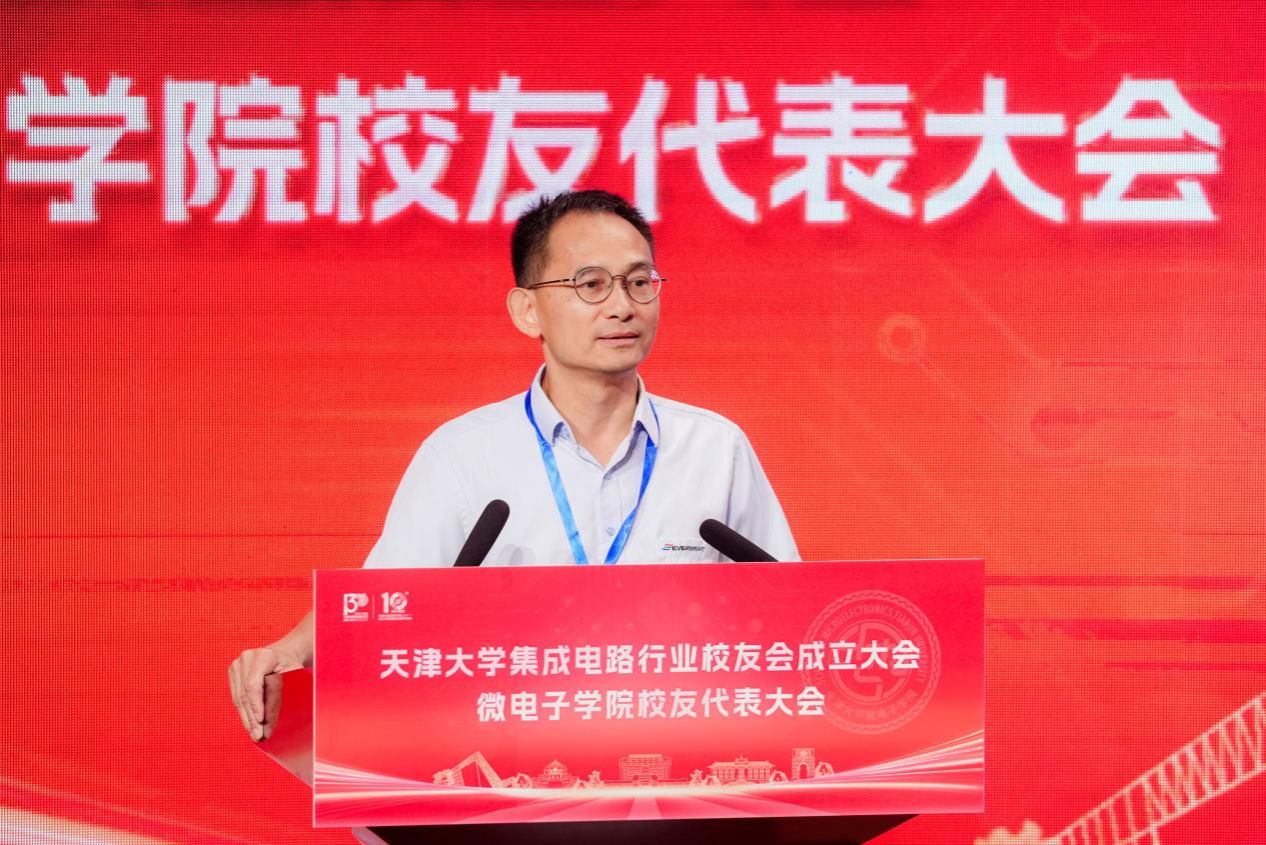 微电子学院院长马凯学代表学院作题为《“新质赋能+芯向未来”天津大学集成电路建设与发展》的发展报告,介绍了天津大学在集成电路设计与EDA、器件材料与工艺、制造与封装测试等研究方向的研究进展,分享了校企科研合作案例。他表示,学院将依托天津大学集成电路行业校友会、微电子学院校友会,进一步推进校友和学院双向奔赴、相互促进、共同发展。